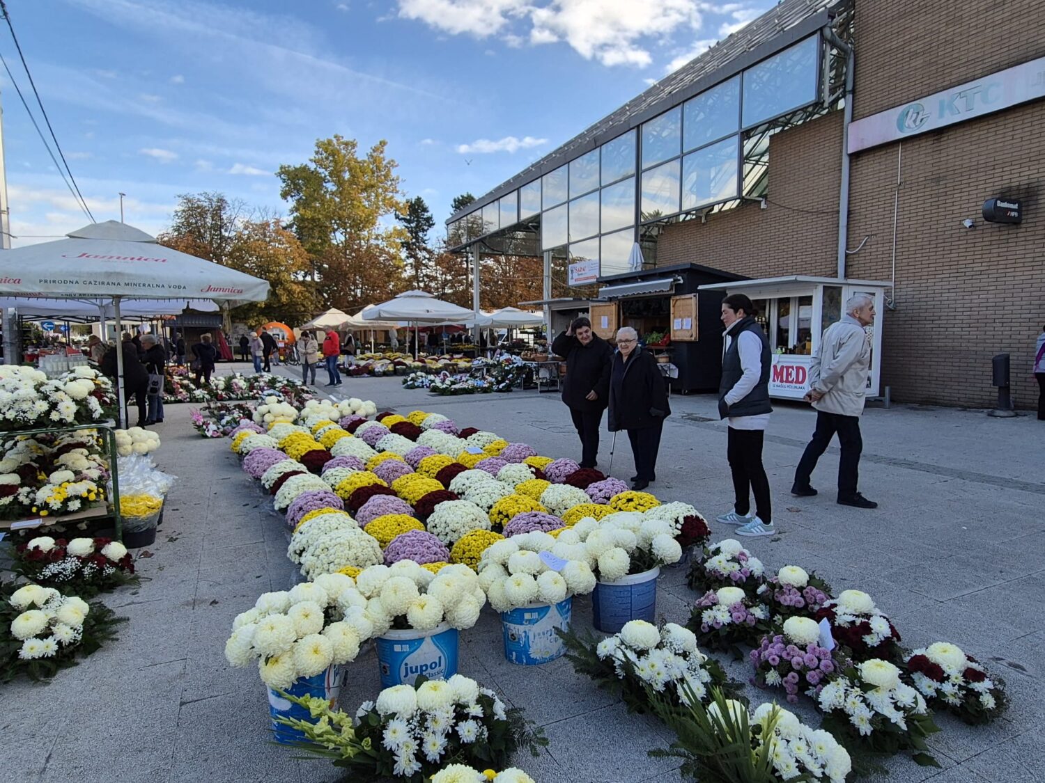 Gorički Tržni centar prepun je cvijeća i cvjetnih aranžmana za blagdan Svi svetih. Trgovci nude bogat izbor od malih teglica s multiflorom u raznim bojama, gumbeke, margarete do velikih cvjetnih aranžmana s krizantema čija cijena ide i do 100 eura. Iako prodavači tvrde da su cijene iste kao i lani, kupci se s tim baš i ne slažu. Čini im da je sve skuplje barem 15 posto u odnosu na prošlu godinu.