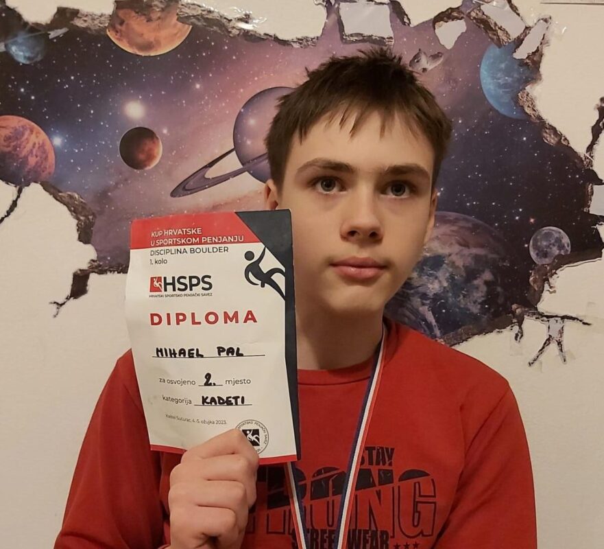 Mihael Pal iz Buševca osvojio je drugo mjesto na Kupu Hrvatske u sportskom penjanju u disciplini Boulder. Ovaj vikend u Kaštel Sućurcu organiziran je KUP Hrvatske u sportskom penjanju u disciplini boulder, 1.kolo, gdje su sudjelovali najbolji penjači iz cijele Hrvatske. Mihael je u izazovnom okruženju postigao odličan uspjeh osvojivši drugo mjesto i jedini je na petoj stazi došao do polovice staze, tzv.” Zone”, javila nam je Mihaelova mama Jasmina Pal.