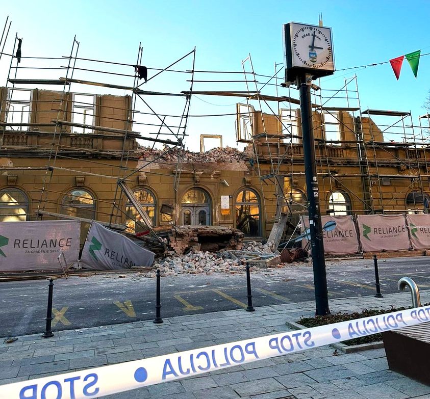 Zgrada je bila teško oštećena u potresu i u tijeku su radovi na obnovi.