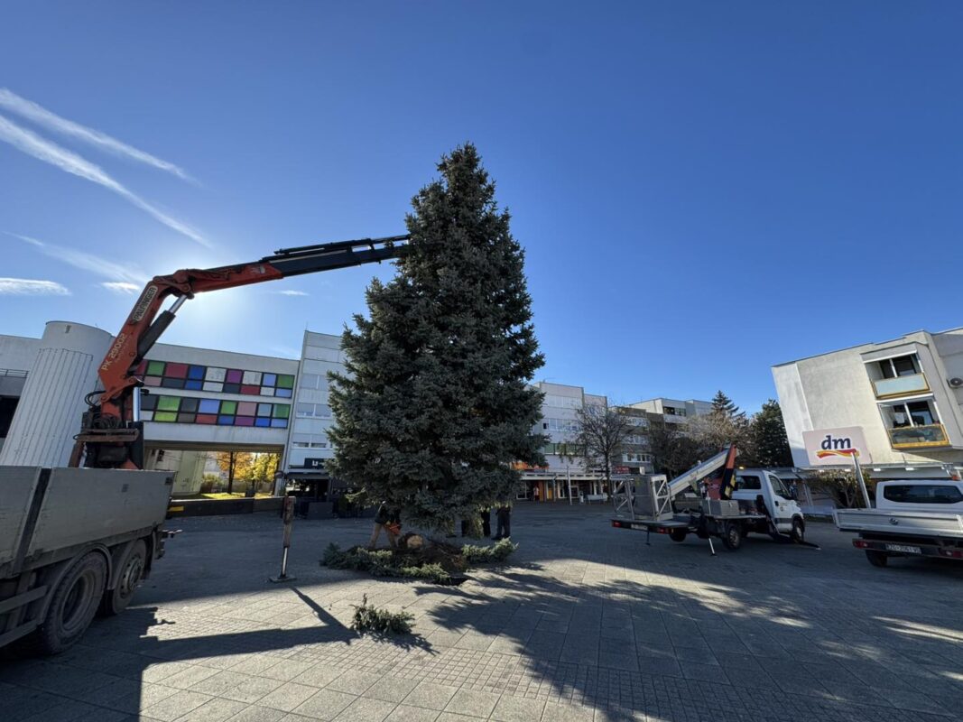 Blagdansko ukrašavanje u punom je jeku. I ovaj tjedan vrijedni radnici VG Komunalca postavljaju božićne ukrase. Jutros su na Trgu Stjepana Radića postavili božićnu jelku visoku devet metara.