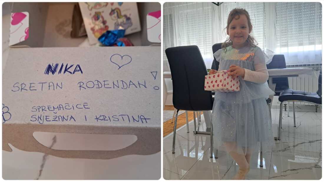 – Ova prekrasna gesta teta spremačica dokazuje da posao rade s ljubavlju i pažnjom, ovo za njih nije samo posao nego poziv. Zahvalni smo teti Maci i Ani na prekrasnoj proslavi za Niku koja je puna uzbuđenja dočekala svoj rođendan, a kutija u ormariću je dar koji ćemo pamtiti jako dugo. Unutra su bili slatkiši i igračka. Moram reći da nije važan sam poklon nego gesta prema našem djetetu – rekla nam je mama Nikolina uz velike pohvale za osoblje koje radi u Cicibanu.