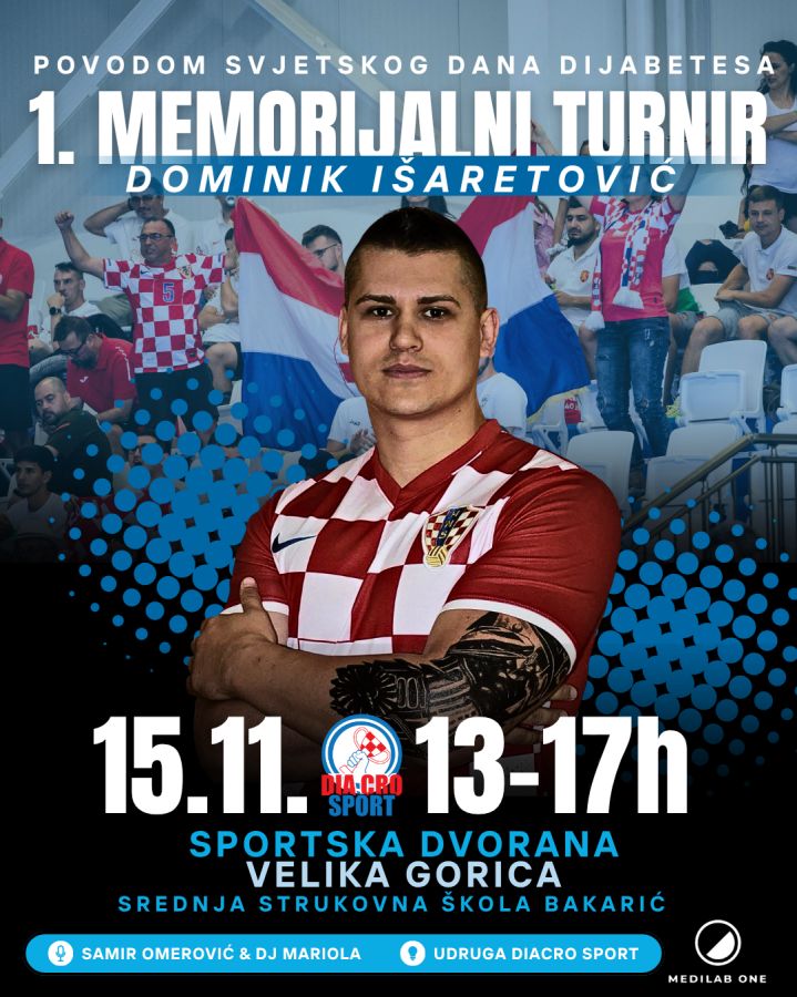 U spomen na našeg prerano preminulog reprezentativca Dominika Išaretovića, u Velikoj Gorici će se u subotu, 15. studenoga održati memorijalni futsal turnir koji će pratiti edukativni program. U povodu Svjetskog dana dijabetesa u fokusu su sportaši s dijabetesom i svi koji podržavaju borbu za aktivan i zdrav život s dijabetesom.