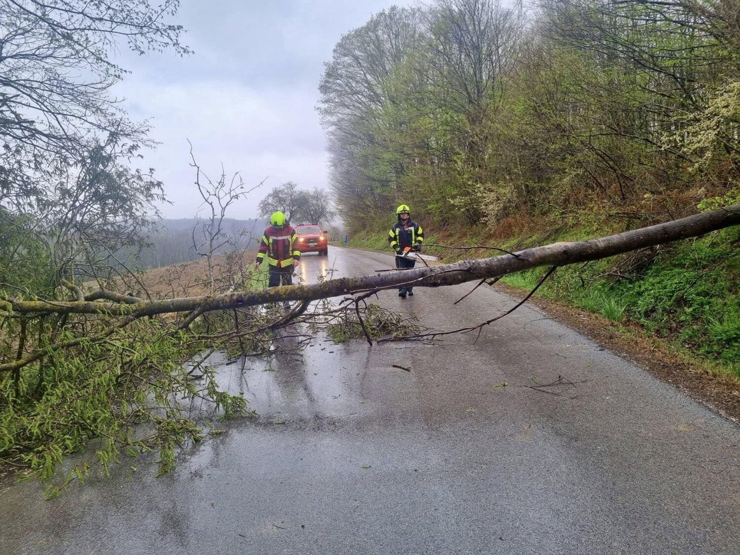 U nekoliko županija zabilježen je povećan broj intervencija uklanjanja stabala i grana s prometnica, doznajemo u Hrvatskoj vatrogasnoj zajednici.
