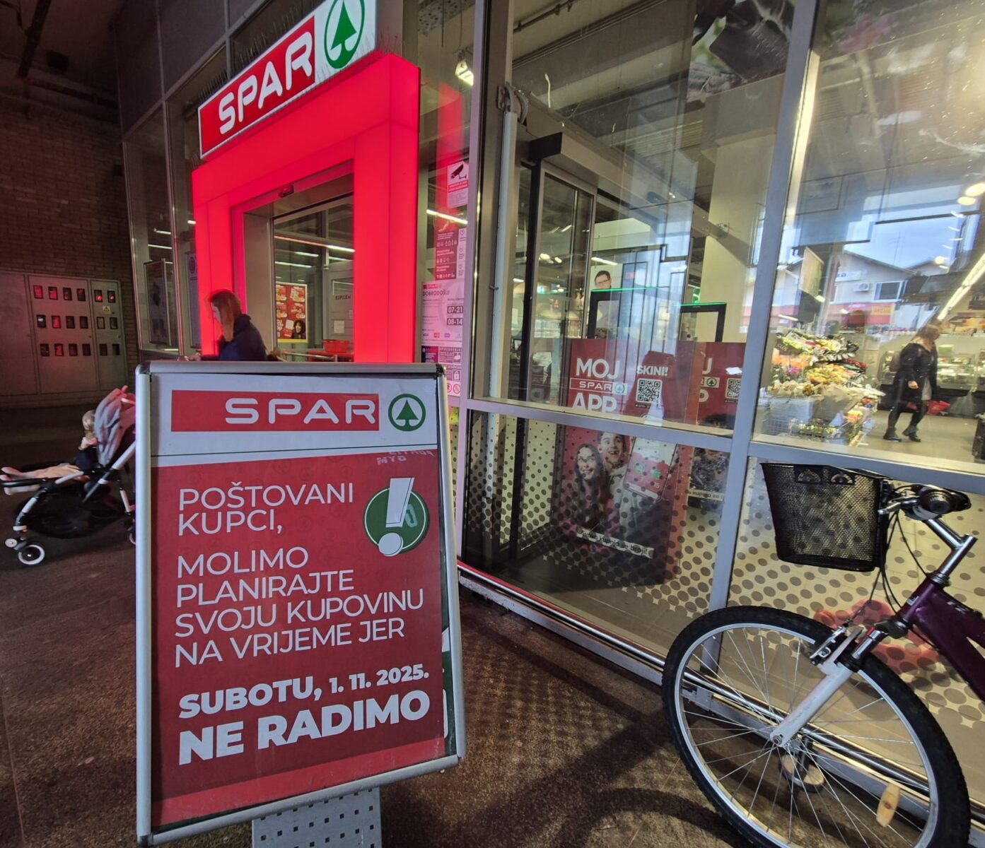 Spar: Od tri trgovine tog lanca u našpem gradu niti jedna neće raditi na Sve svete. U nedjelju će hipermarket Interspar biti otvoren od 7 do 20 sati, a Spar u Tržnom centru od 8 do 14, dok trgovina u Galženici neće raditi.