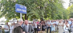 Gradonačelnik Krešimir Ačkar zajedno s bratom Josipa Frkina fra Vatroslavom svečano je otkrio ploču s imenom novoimenovanog parka.