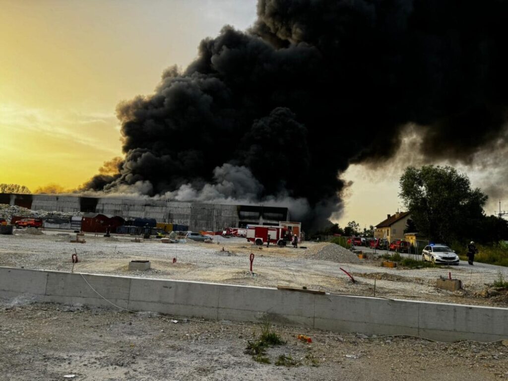 Još uvijek gori skladište plastike u Zaprešiću. Požar je izbio sinoć oko 19 sati u skladištu tvrtke za zbrinjavanje otpada Eko Flor.