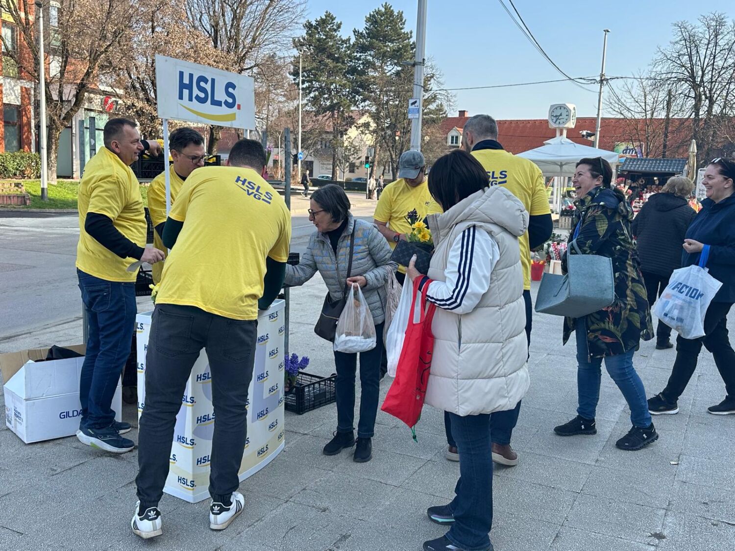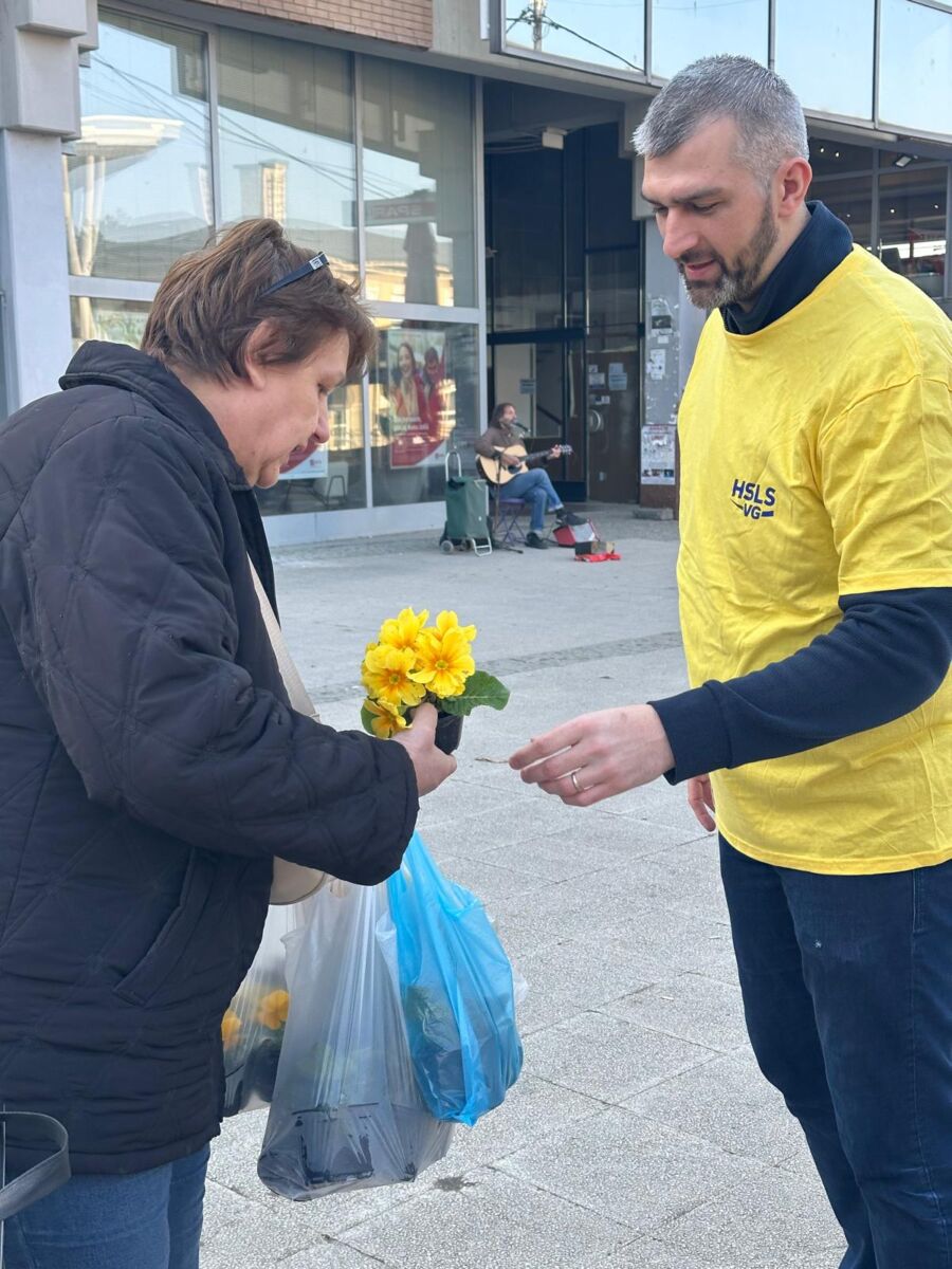 Članovi stranke, predvođeni predsjednikom Mariom Zagorcem, tom su prilikom razveselili brojne Goričanke sadnicama cvijeća. Dijelili su žute jaglace i plave zumbule. Riječ je o cvijeću koje je odabrano s posebnom simbolikom, budući su žuta i plava boja zaštitni znak HSLS-a.