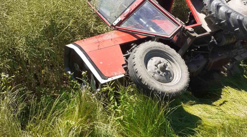 U jednom trenutku kotačima je prešao na obližnju uzbrdicu zbog čega se traktor prevrnuo, a traktorist pao na tlo.