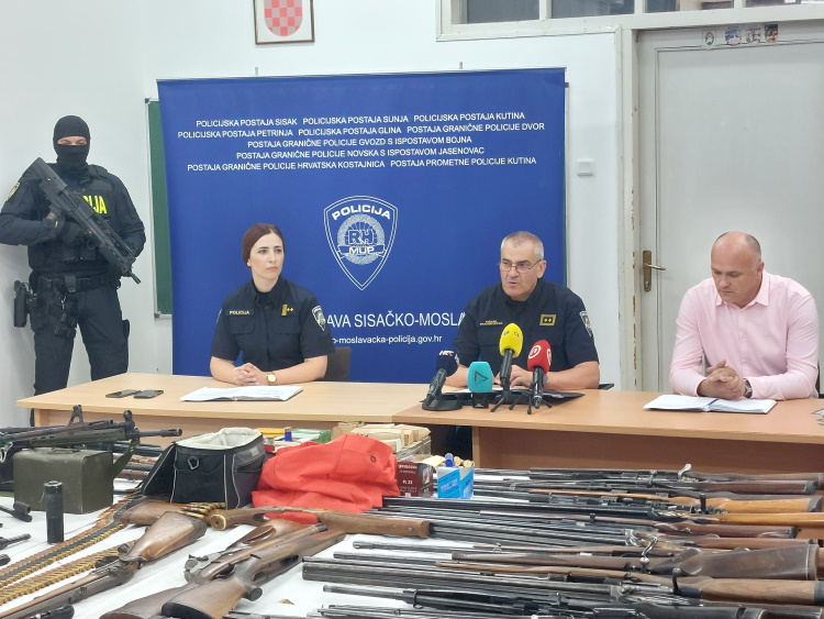 Načelnik Pešut je rekao da su, temeljem naloga Županijskog suda u Sisku, pretraženi domovi i druge prostorije koje osumnjičenici koriste, a pretragama je pronađeno i oduzeto velika količina oružja i streljiva.