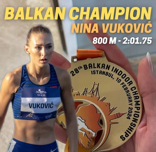 Na Dvoranskom prvenstvu Balkana koje se održava u Istanbulu, Nina je stazu istrčala za – 2:01,75. Prošle godine Nina je na Prvenstvu Balkana bila druga s rezultatom 2:02,62.