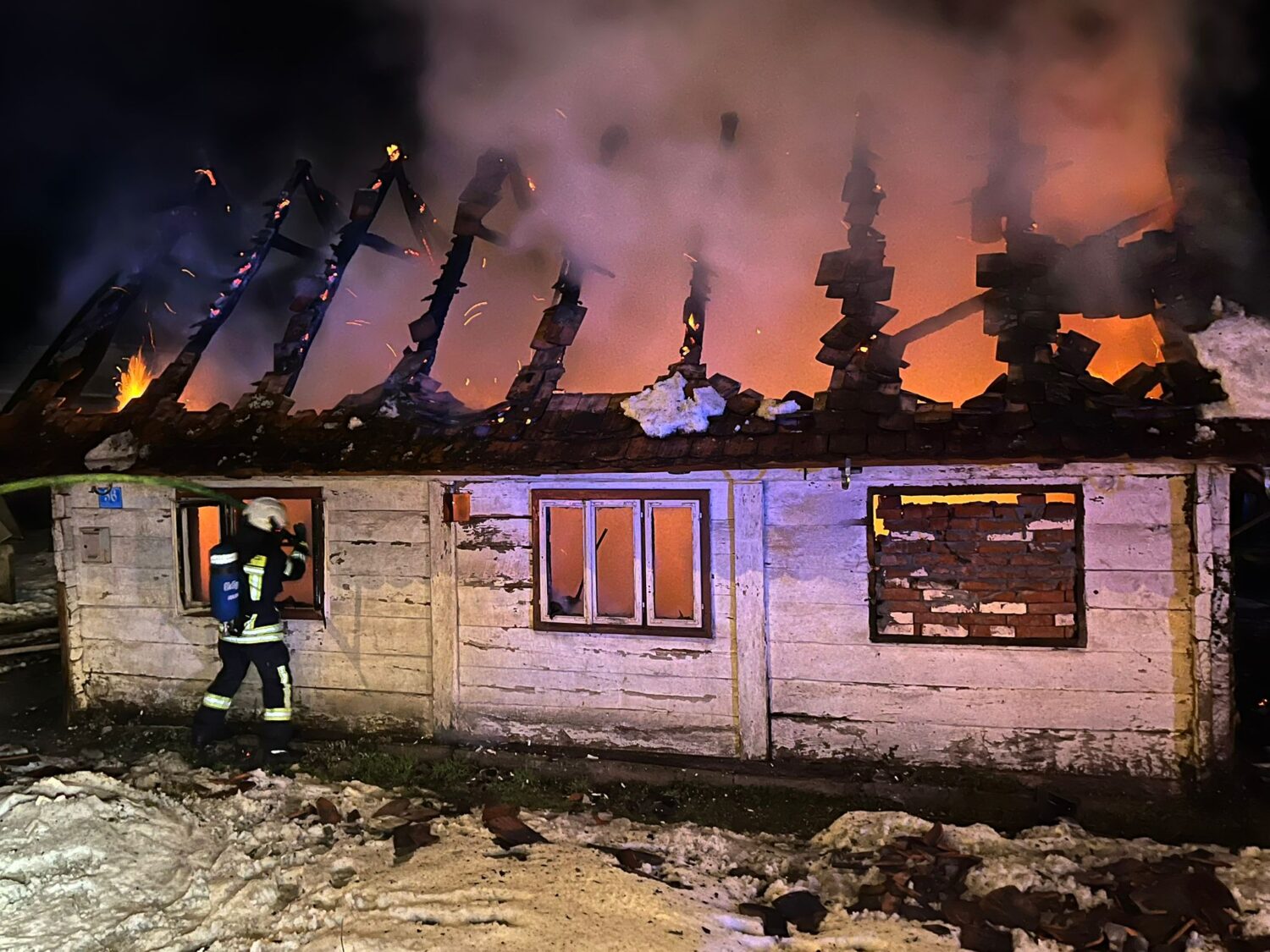 Po dolasku na mjesto intervencije zatečen je požar u razbuktaloj fazi koji je zahvatio cijelu građevinu.
