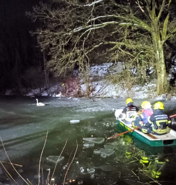 Vatrogasci iz općine Brdovec dobili su dojavu da je pomoć potrebna jednom labudu. Naime, labud je zapeo u zaleđenoj rijeci Sutli.