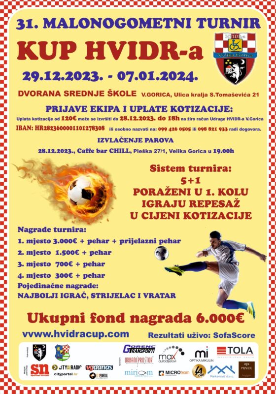 Kraj prosinca tradicionalno je rezerviran za popularni velikogorički malonogometni turnir Kup HVIDR-e. Ove godine 31. izdanje turnira počinje 29. prosinca, a finalna utakmica na rasporedu je 7. siječnja.