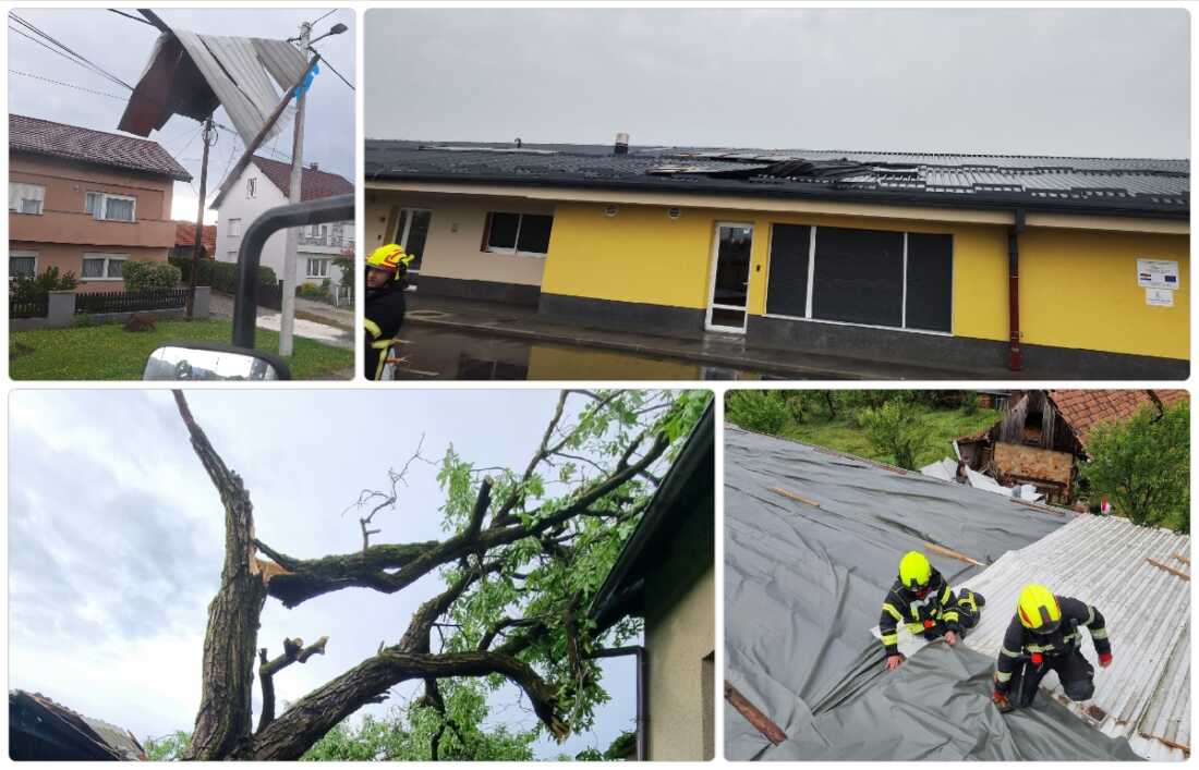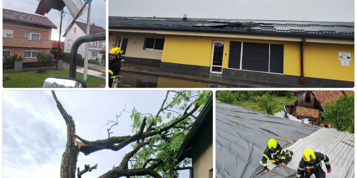 Vatrogasne intervencije obuhvaćaju dva požara kuće, sanaciju oštećenih krovišta, uklanjanje srušenih stabla s objekata, elektro energetskih vodova i prometnica te ostale sanacije na stambenim i gospodarskim objektima.
