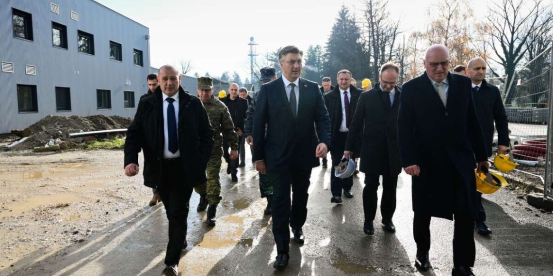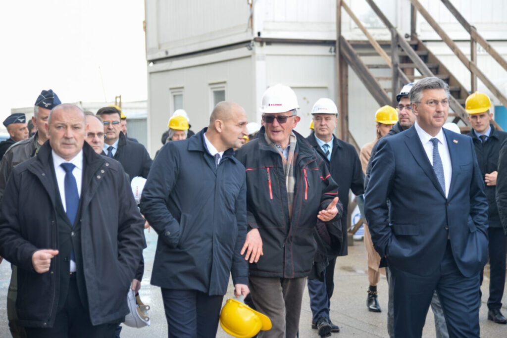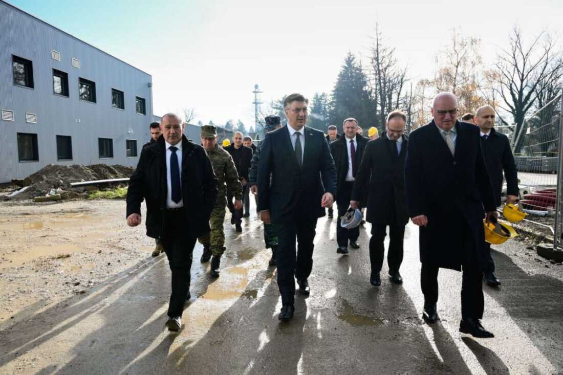Premijer Andrej Plenković, ministri Ivan Anušić i Tomo Medved obišli su u ponedjeljak radove na izgradnji nove infrastrukture za višenamjenske borbene avione u vojarni “Pukovnik Marko Živković” na Plesu.