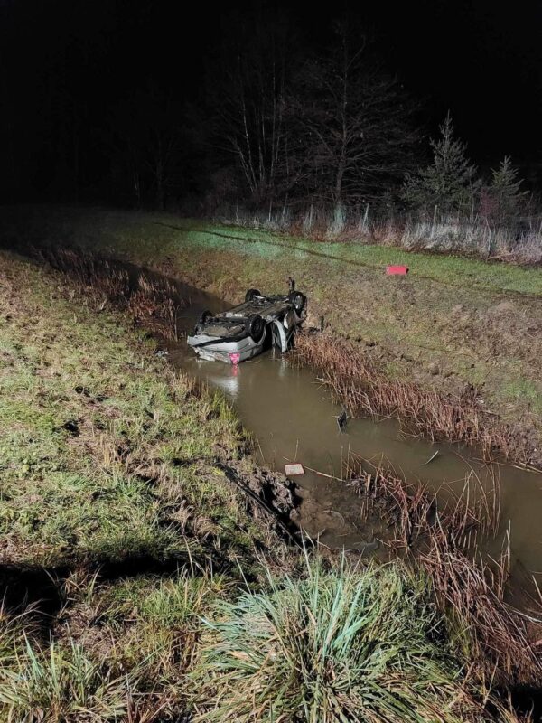 Pritom je oštetio prometni znak nakon čega je sletio u usjek kojim teče potok gdje se zaustavio preokrenut na krov – rekli su iz policije.