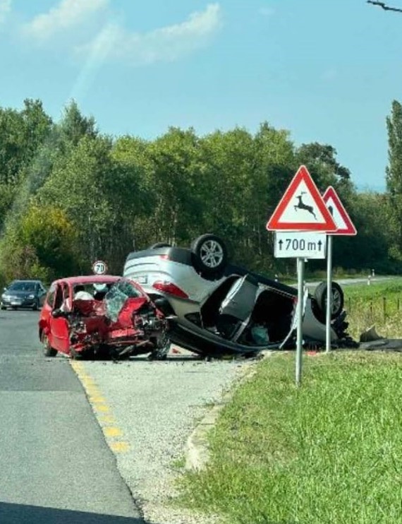 Nakon naleta na drugo vozilo, 42-godišnjak udara u rubni kamen i prevrće na krov.