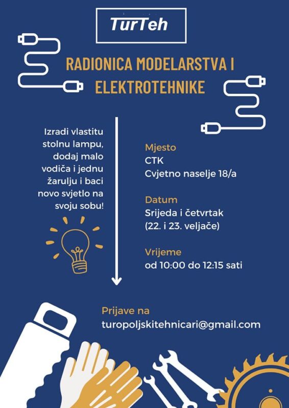 Na radionicu se mogu prijaviti učenici od trećeg razreda i stariji. Radionica je posvećena modelarstvu i elektrotehnici, a učenici će učiti kako sami mogu izraditi stolnu lampu.