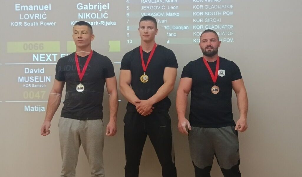 Najsjajnije odličje pripalo je Marinu Ramljaku, koji je osvojio zlatnu medalju u kategoriji početnika do 85 kilograma lijevom rukom /// Edi Šprajcar također je bi oodličan, osvojivši srebrnu medalju lijevom rukom te broncu desnom rukom u istoj kategoriji ///