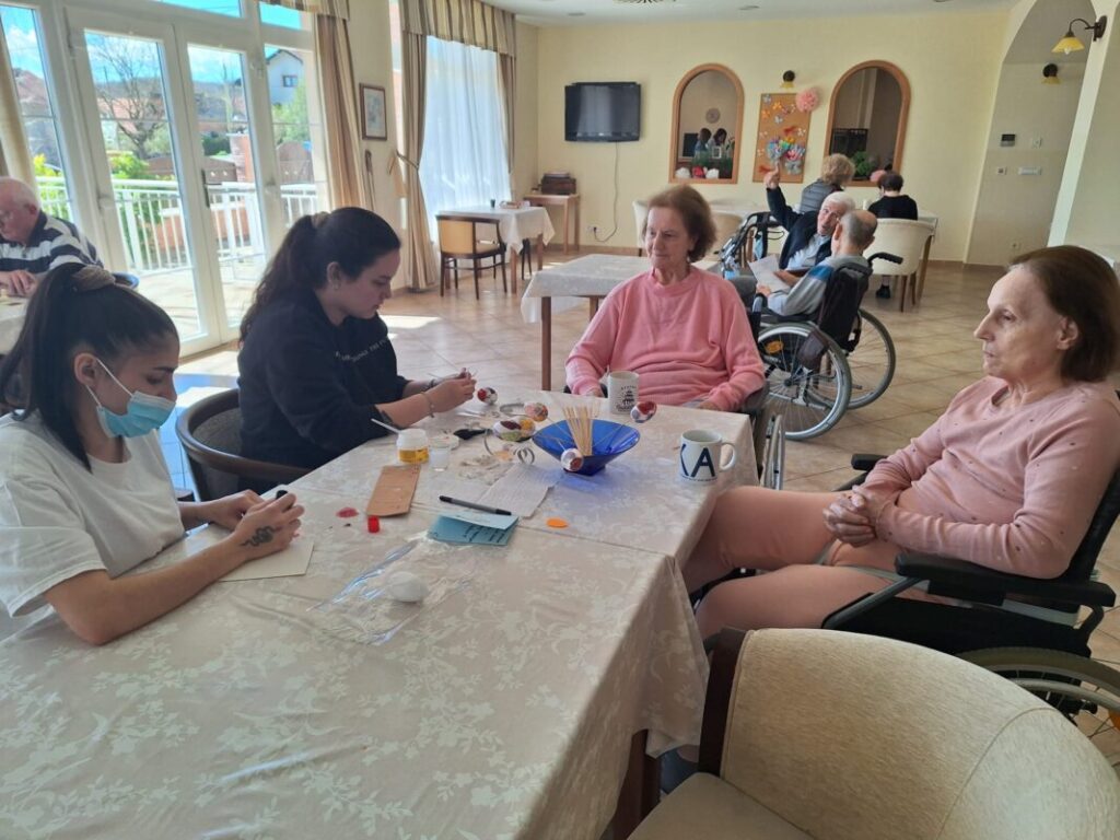 Volonteri Ekonomske škole uoči Uskrsa tradicionalno su posjetili Dom za starije i nemoćne osobe „Oaza“ na Ključić Brdu. Učenici su zajedno s korisnicima doma vrijeme proveli u izradi uskršnjih ukrasa, pisanica i čestitki, uz priče starijih kako su se nekad ukrašavale pisanice.