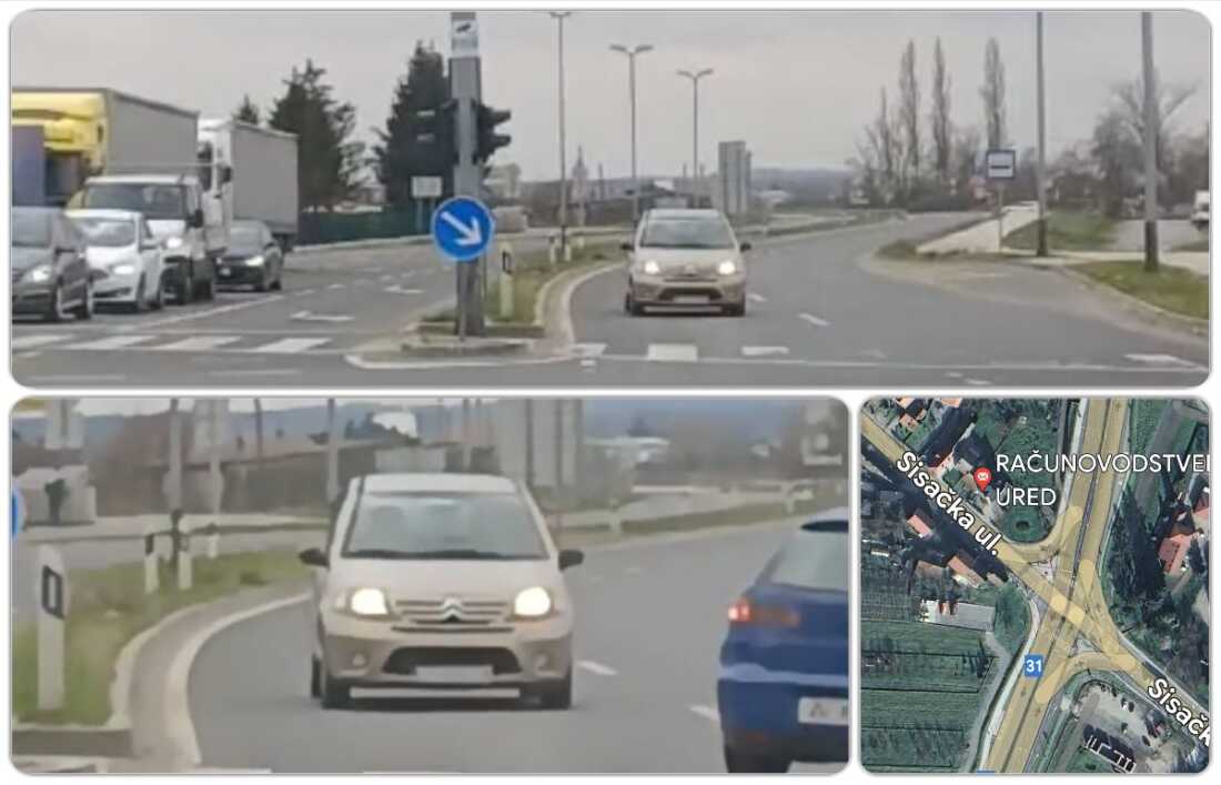 Čitatelj Gorice.info poslao nam je fotografije vožnje u suprotnom smjeru koje je snimio čekajući na semaforu na iznimno frekventnom velikogoričkom križanju Ulice 153. brigade (državne ceste D31) i Sisačke. Ni sam nije vjerovao kada je ugledao automobil koji mu se približava iz smjera sajmišta, ali to je bio samo početak opasne vratolomije.